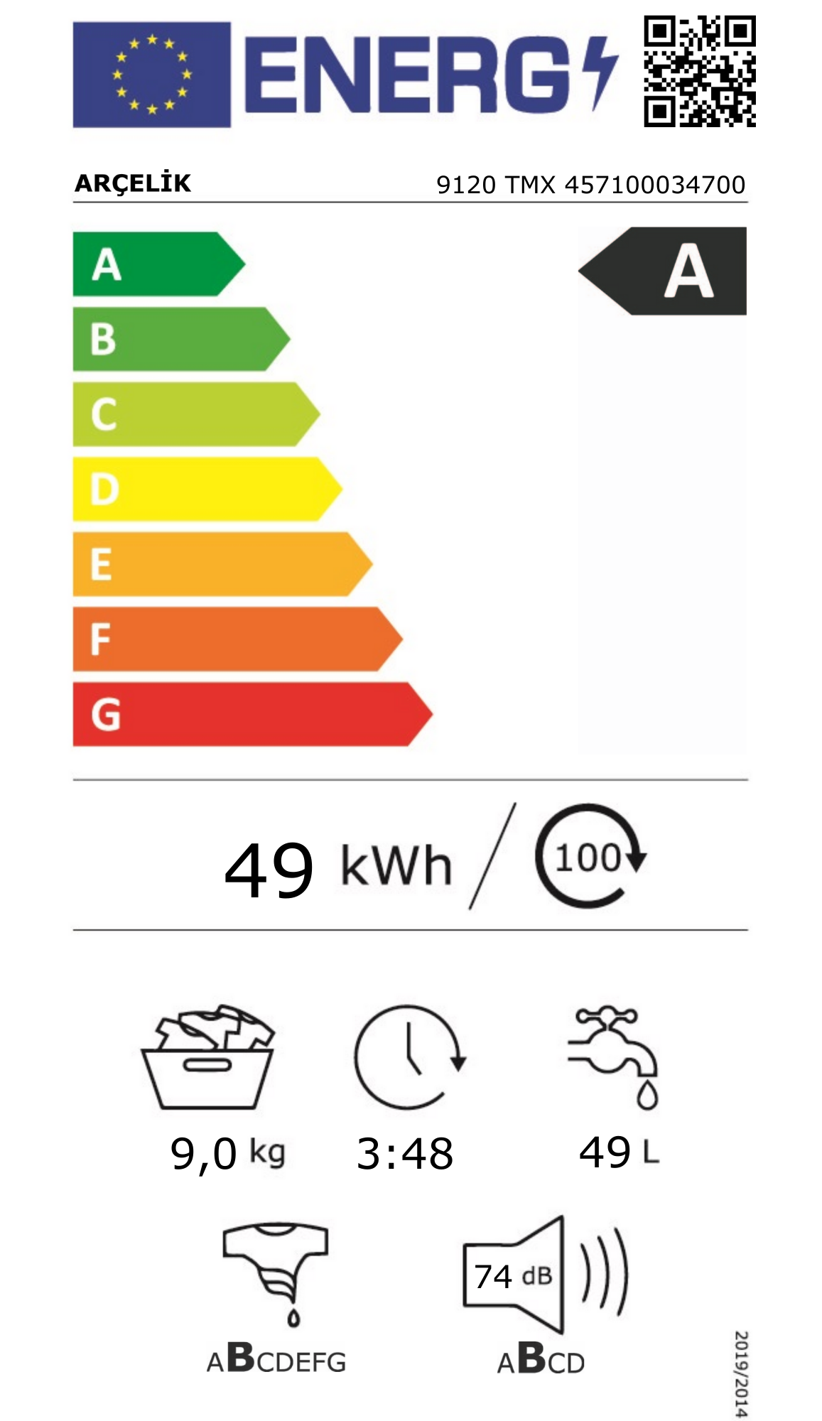 Arçelik  9120 TMX 9 Kg Çamaşır Makinesi